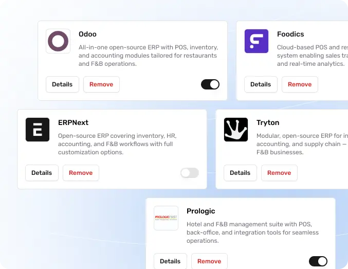 Connects your systems—POS, finance, inventory, CRM, HR—through integrations and data pipelines into one centralized intelligence hub.